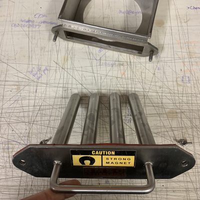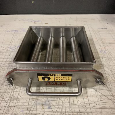 Rare Earth Grate magnets can be custom made to fit into any size hopper or fabricated into a drawer type magnet to fit into an existing chute. Grate magnets are best suited for easy flowing products.